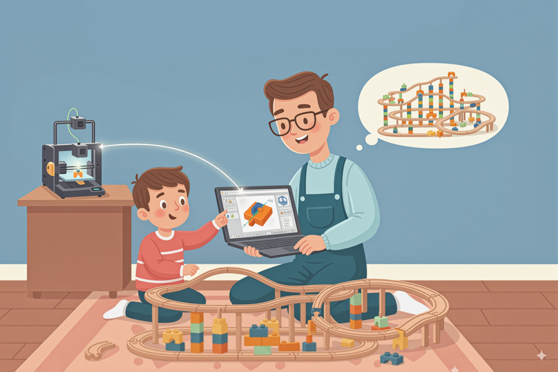 Adapt'3D, c’est l’histoire d’un papa ingénieur de métier, bricoleur dans l'âme et de son fils passionné de trains.